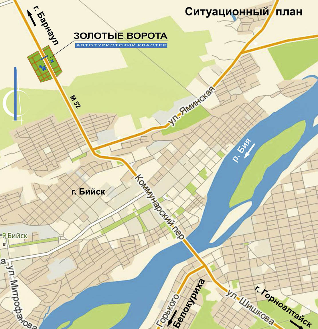 Кластер разместится на федеральной трассе М-52 «Новосибирск - Ташанта» на въезде в город Бийск Алтайского края со стороны города Барнаула. Ворота должны стать начальной точкой туристического маршрута "Малое золотое кольцо Алтая".