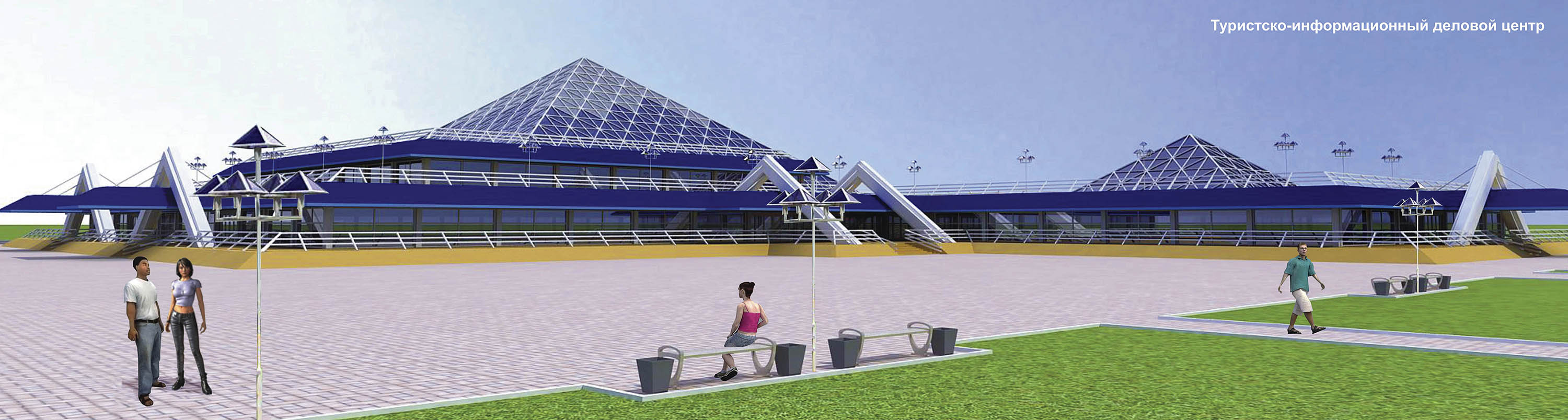 Так как у большинства туристов путешествие по Алтаю ассоциируется с горной местностью, то мы решили обыграть отсутствие горного рельефа, создав имиджевые здания и сооружение кластера (ворота, туристско-информационный деловой центр, автостанция) в виде стилизованных гор с заснеженными вершинами. К тому же необычные по своей архитектуре здания улучшат силуэтно-панорамные характеристики города, а кластеру придадут индивидуальный, узнаваемый образ.